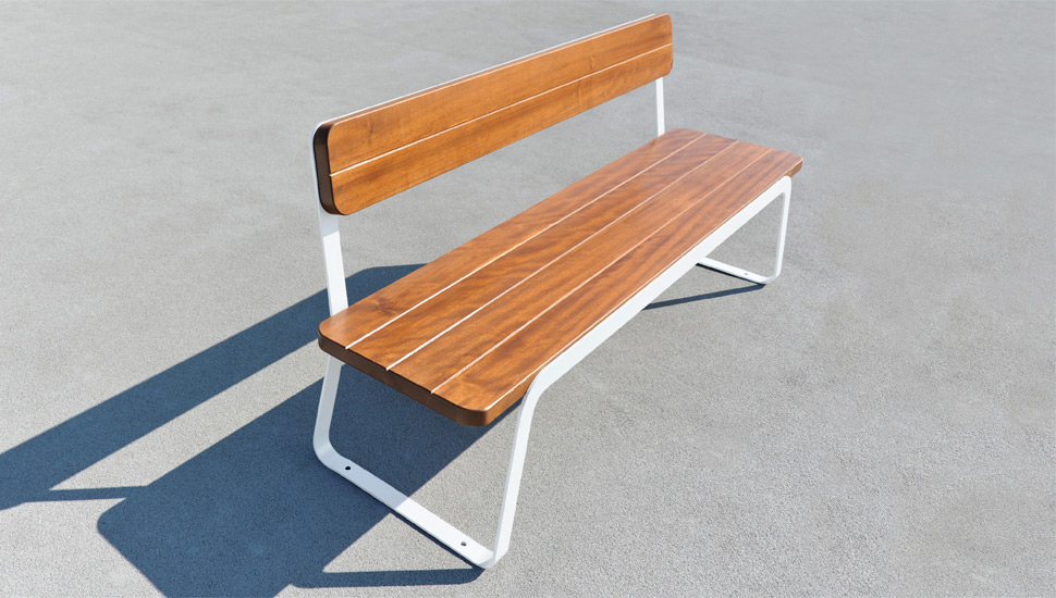 Volee is a system characterized by its lightness and for its simple composition. A continuous steel plate, as a colored line, surrounds the timber elements defining the shape of bench and table.
